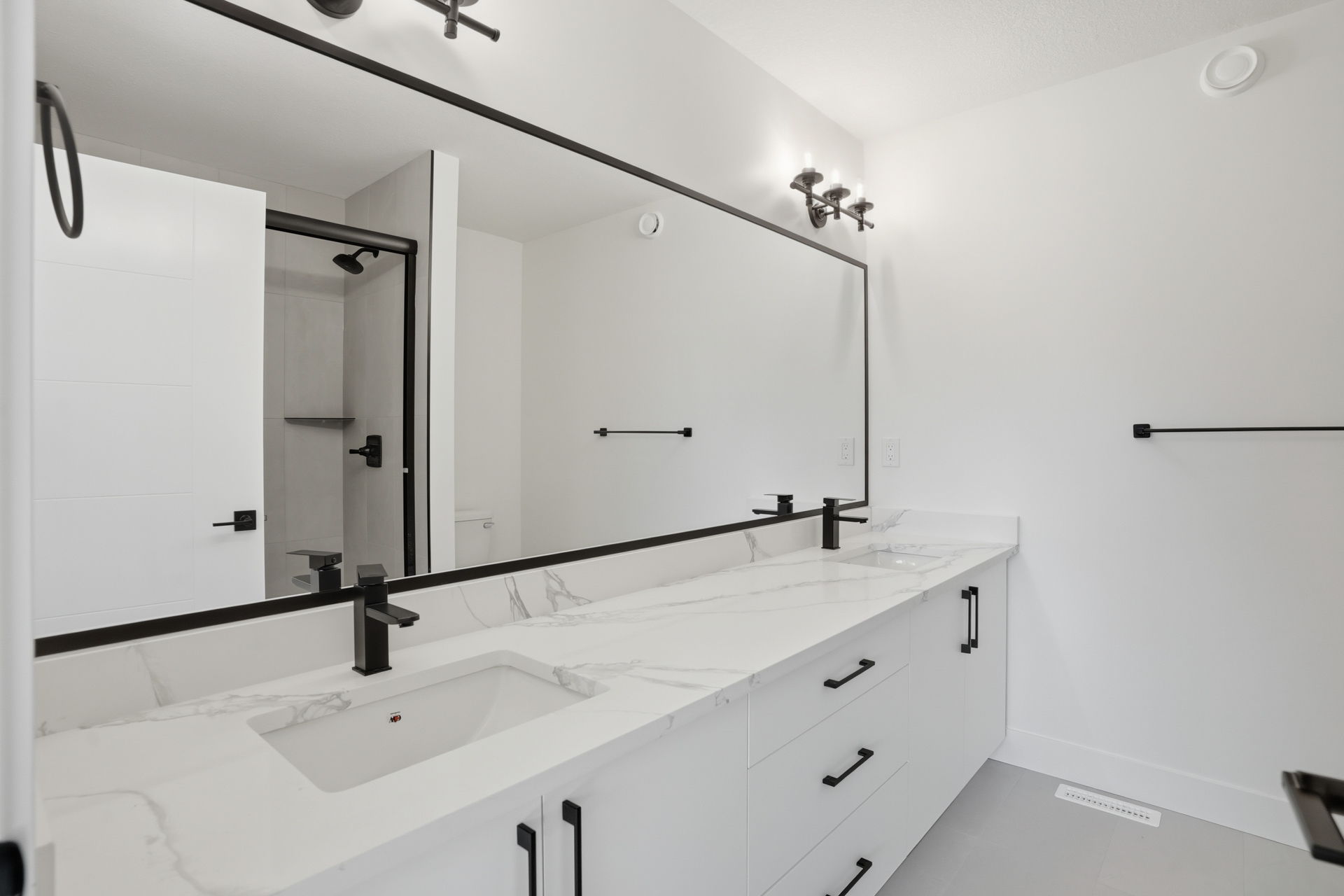 Upstairs, the primary suite includes a tray ceiling and a spa-like 4-piece ensuite, complemented by two additional bedrooms, a laundry room, and a versatile loft. Thoughtful upgrades include 9’ ceilings, custom shelving, a garage floor drain, pre-installed gas lines for a BBQ and heater, a tankless water heater, a high-efficiency furnace, and HRV system. The unfinished basement with a separate entrance offers potential for future expansion. A perfect fusion of comfort, function, and elegant detail.