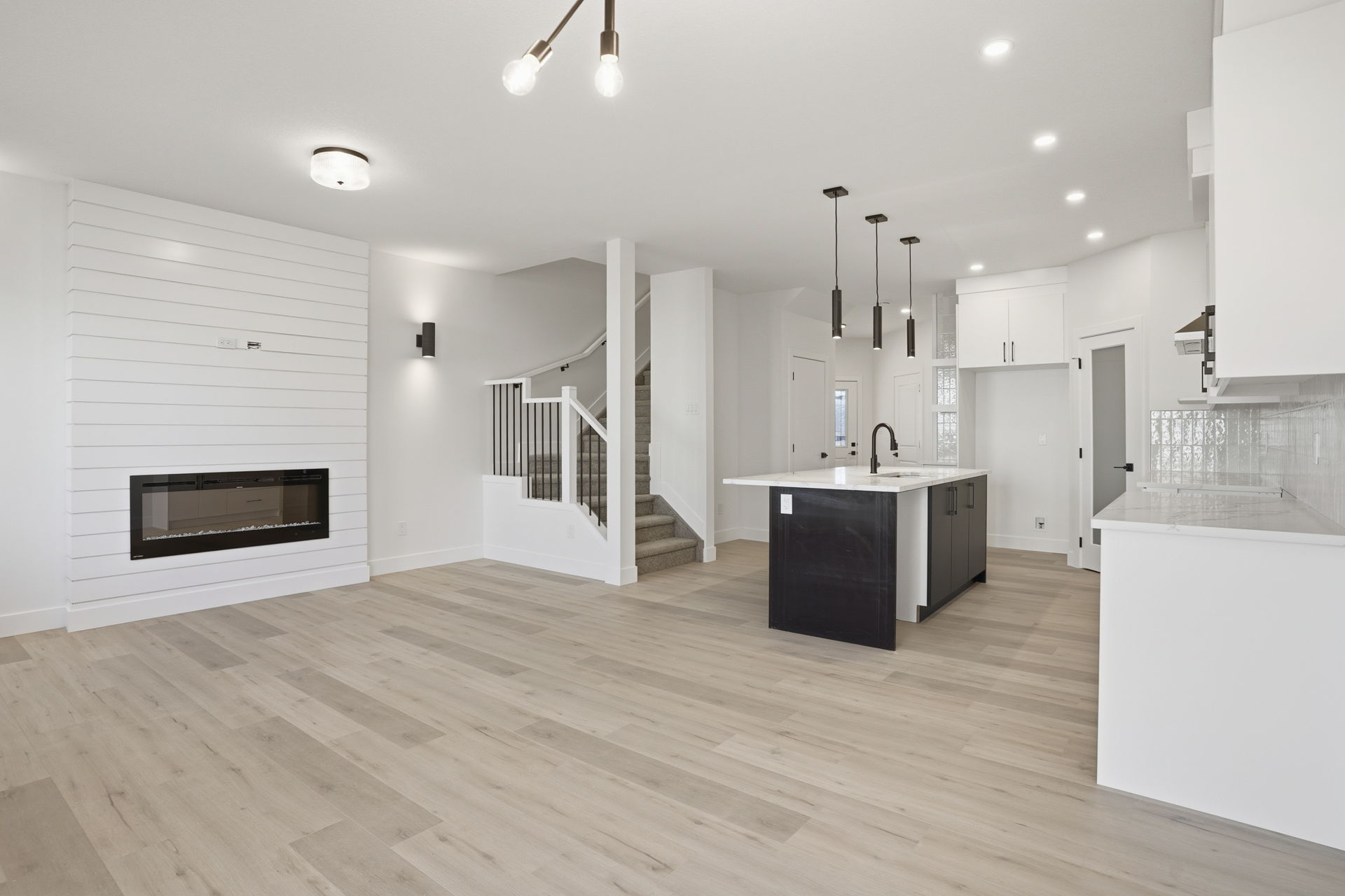 This beautifully designed 1,524 sq ft duplex masterfully blends modern style with everyday living. It features a double attached garage and an open-concept main floor with a chef’s kitchen—complete with quartz countertops and ceiling-height cabinets—that flows into a bright great room with a shiplap accent wall and electric fireplace.