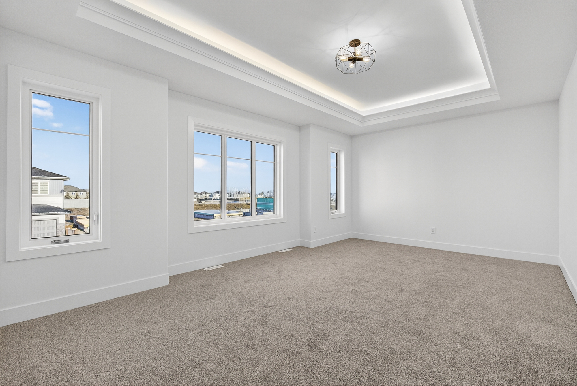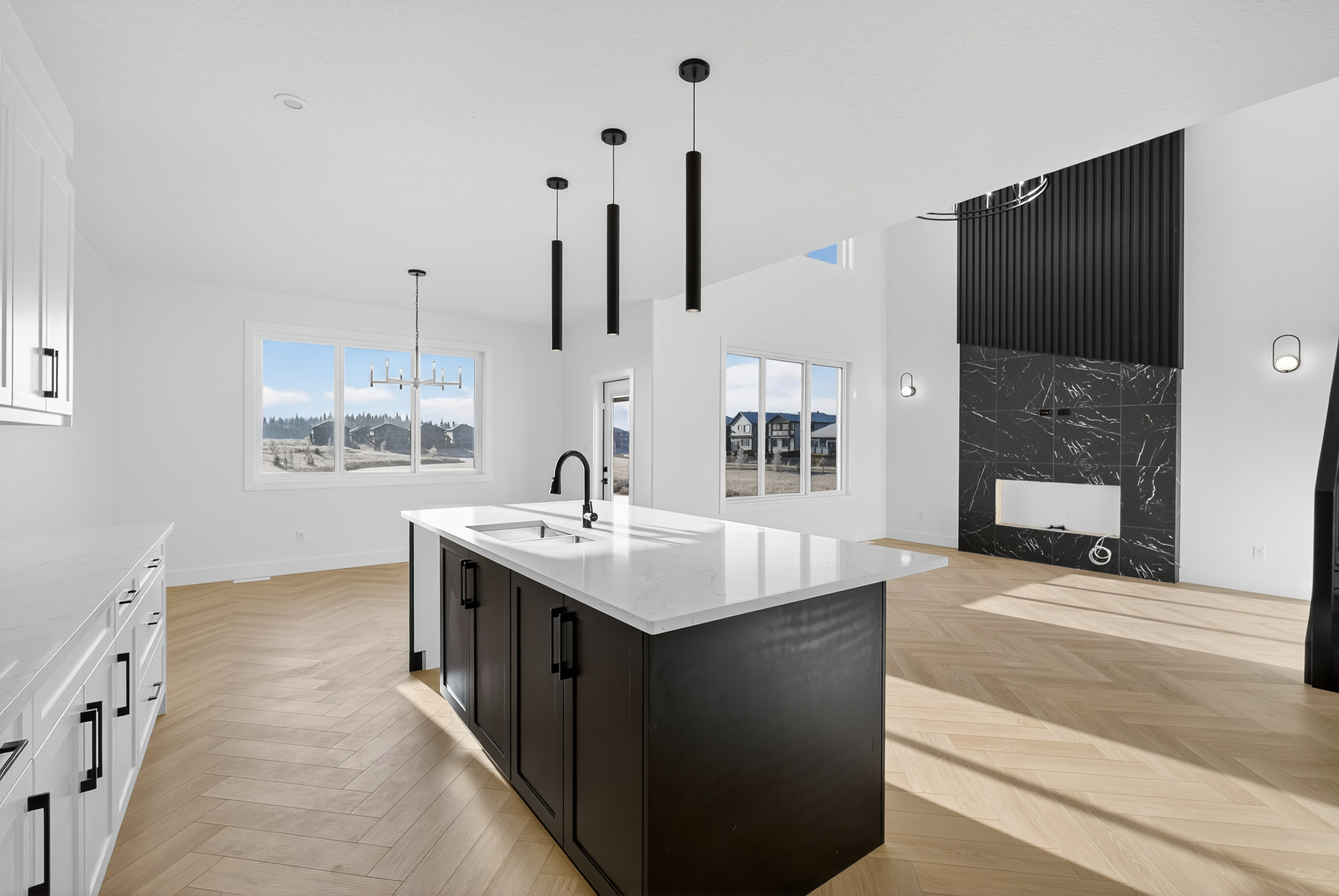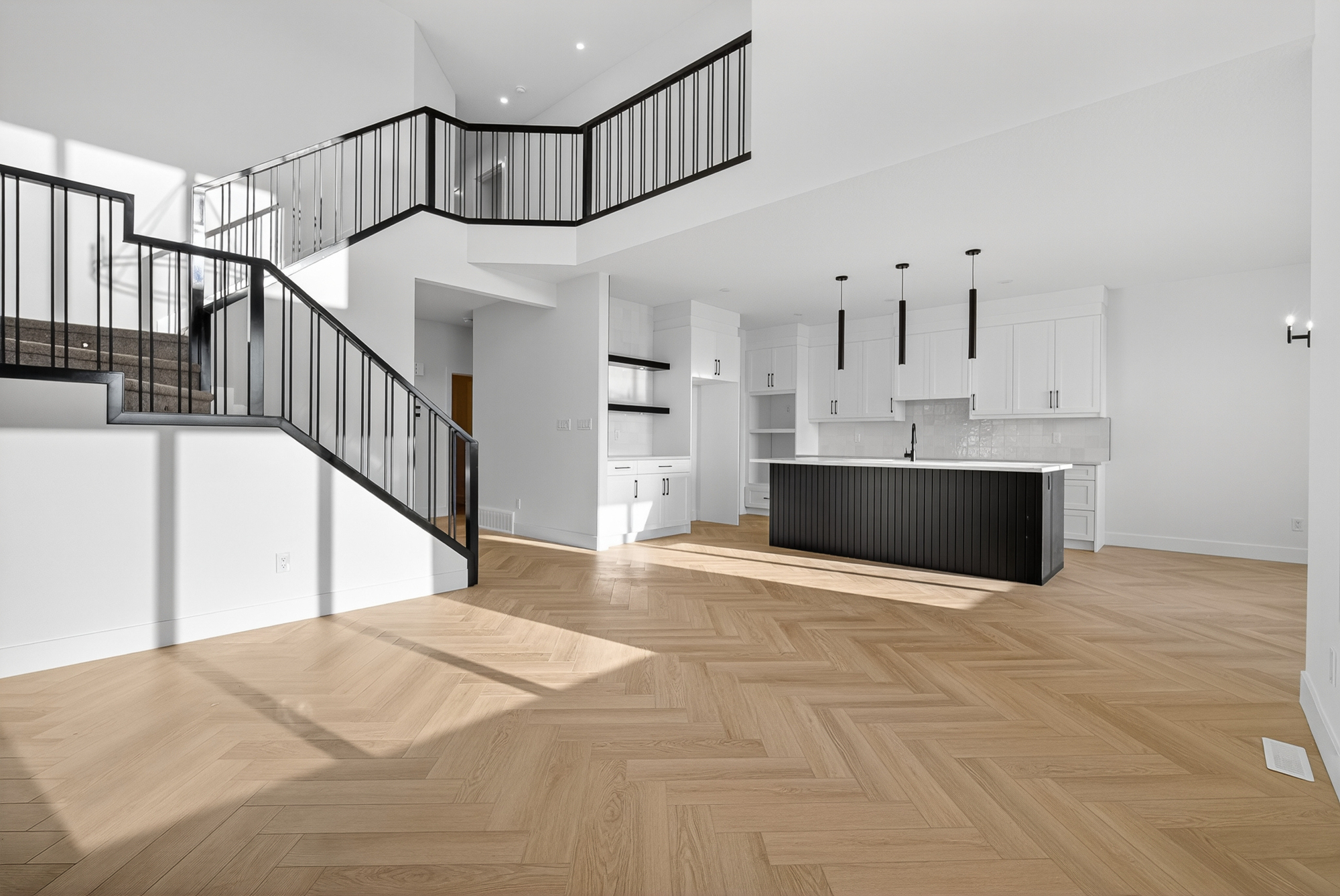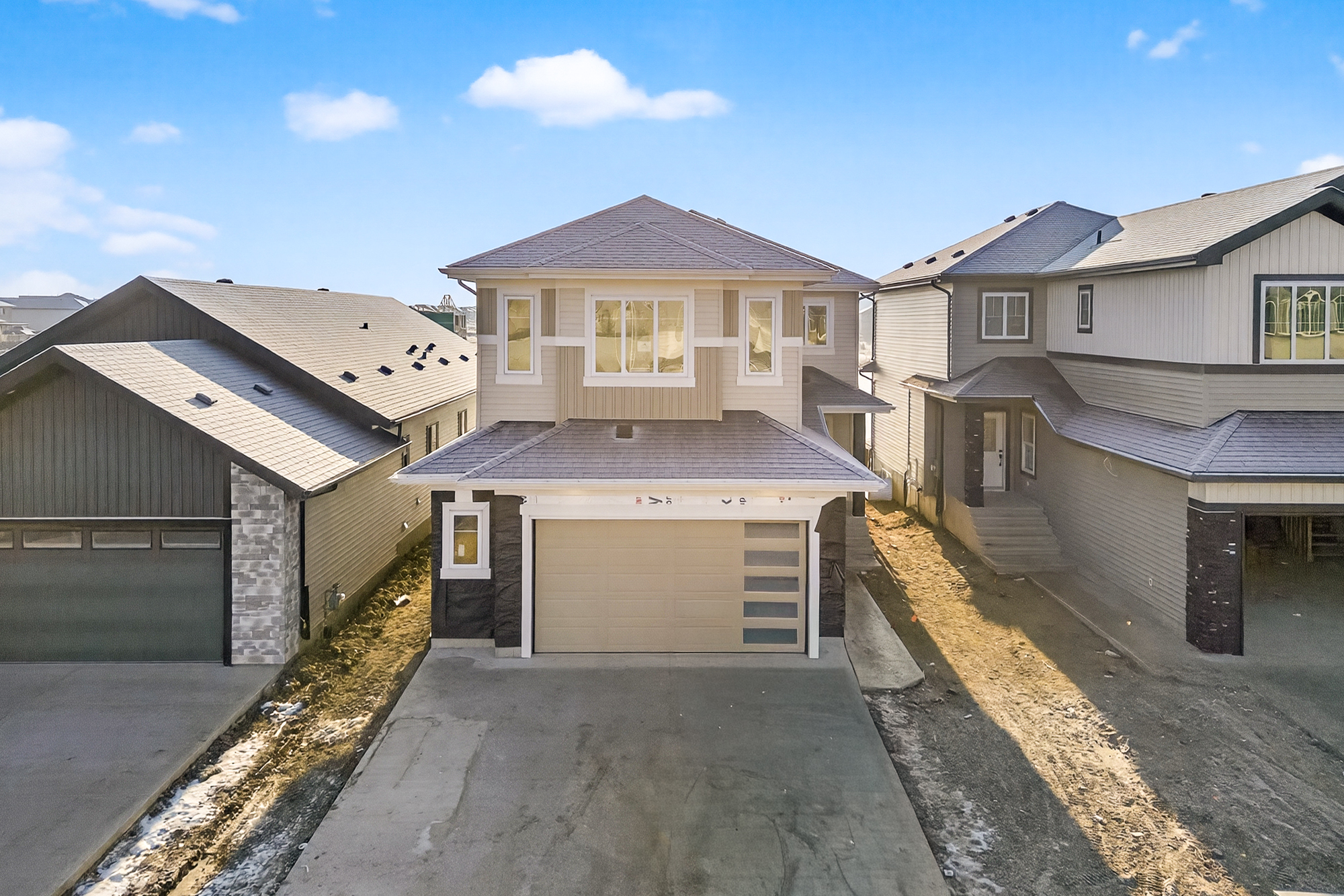 Welcome to this pond-backing home in Copperhaven, thoughtfully designed with over 2,400 sq ft of modern living space. The impressive open-to-above great room features an electric fireplace with a custom built-out feature wall, creating a true focal point of the main floor. With 4 bedrooms and 3 full bathrooms—including a convenient main floor bedroom and full bath, this layout is perfect for families or guests. Large rear windows showcase beautiful views of the pond and fill the home with natural light. The rear-facing primary bedroom offers a luxurious retreat with a 5-piece ensuite that connects directly to the upper-floor laundry room for added convenience.