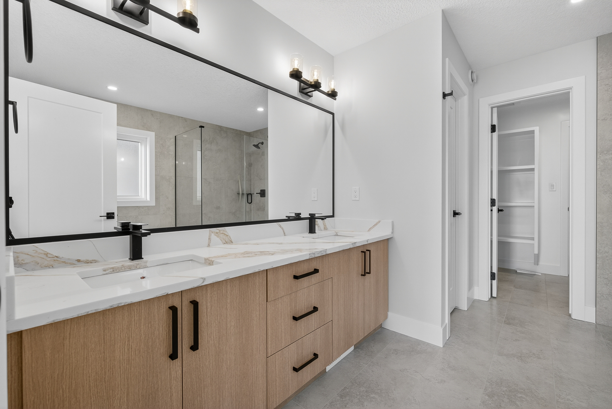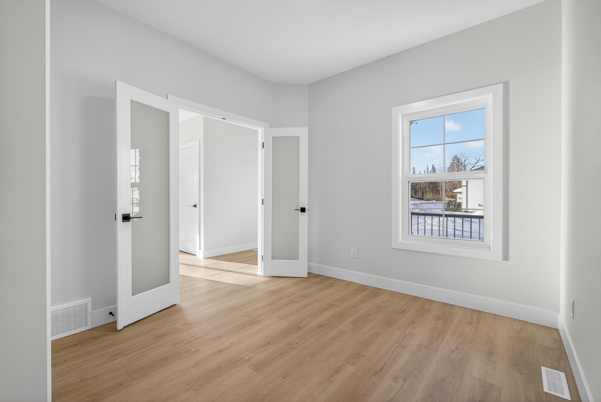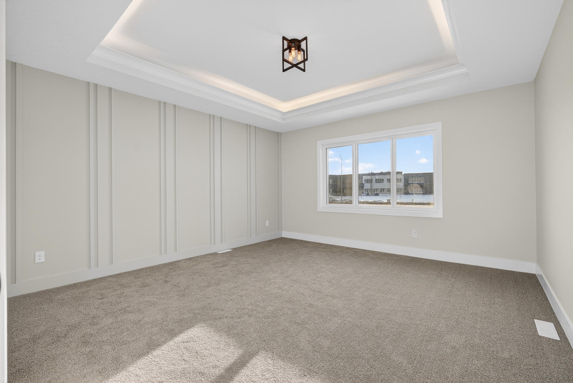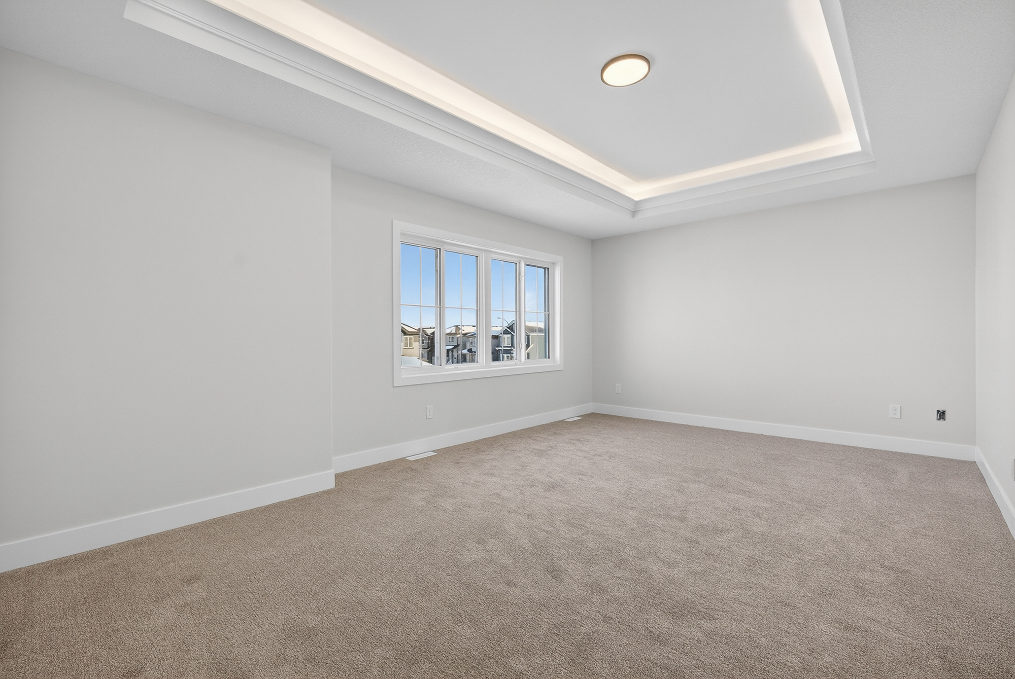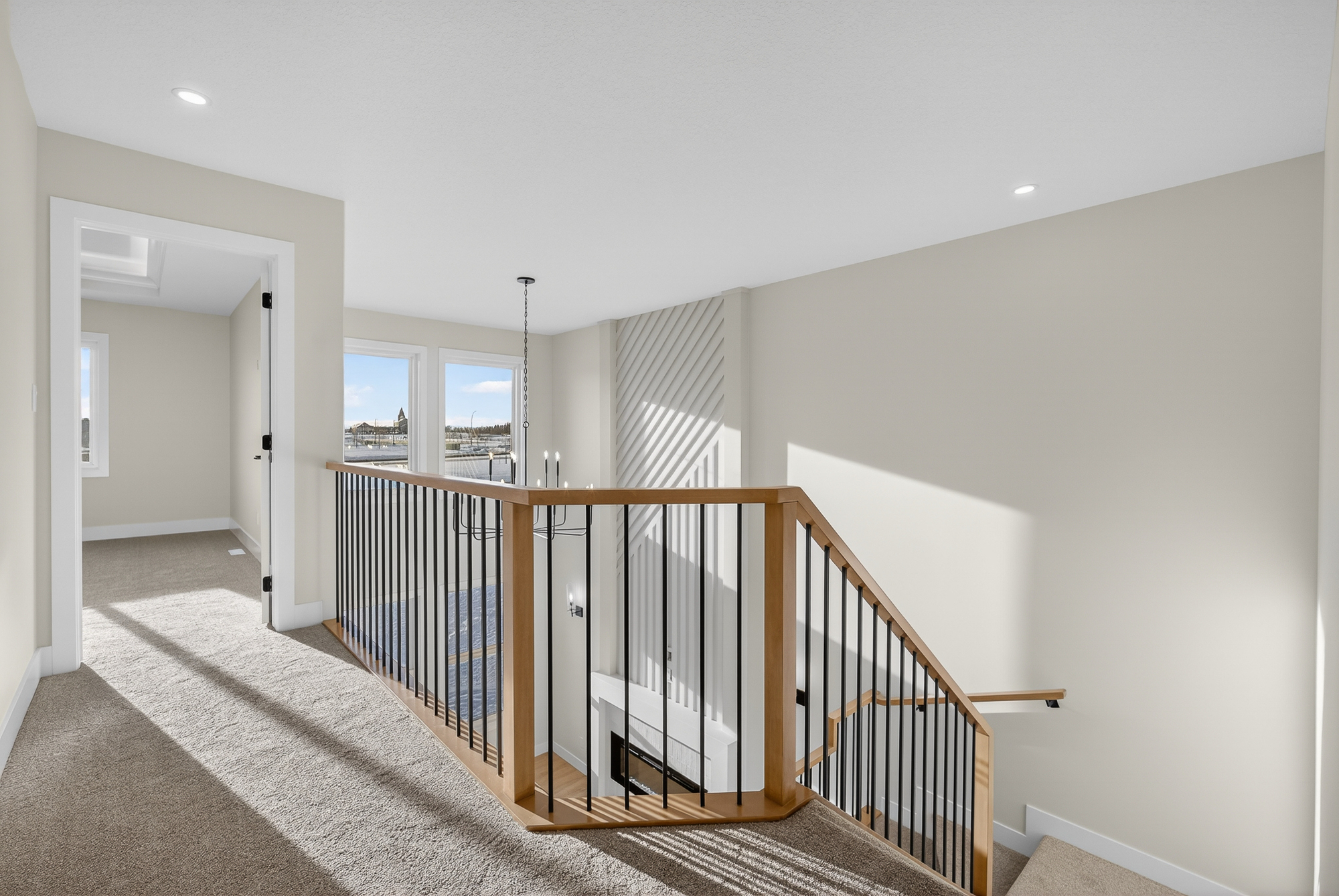Experience this stunning New Era home with no rear neighbors, offering exceptional privacy and modern design. Thoughtfully crafted with an open-concept layout, the home features 9′ ceilings on the main and basement levels and a dramatic open-to-above great room complete with an electric fireplace and custom feature wall. The main floor offers a versatile den or optional fourth bedroom, a convenient half bath, and a chef-inspired kitchen showcasing quartz countertops and full-height cabinetry. Upstairs, enjoy a spacious bonus room with a tray ceiling, three well-appointed bedrooms, and a laundry room that connects directly to the primary ensuite for added convenience. The primary retreat features dual sinks, a freestanding soaker tub, and a tiled shower, creating a true spa-like experience. Additional highlights include a separate side entrance, tankless gas hot water system, MDF shelving, and an unfinished basement ready for your personal touch. MOVE-IN READY