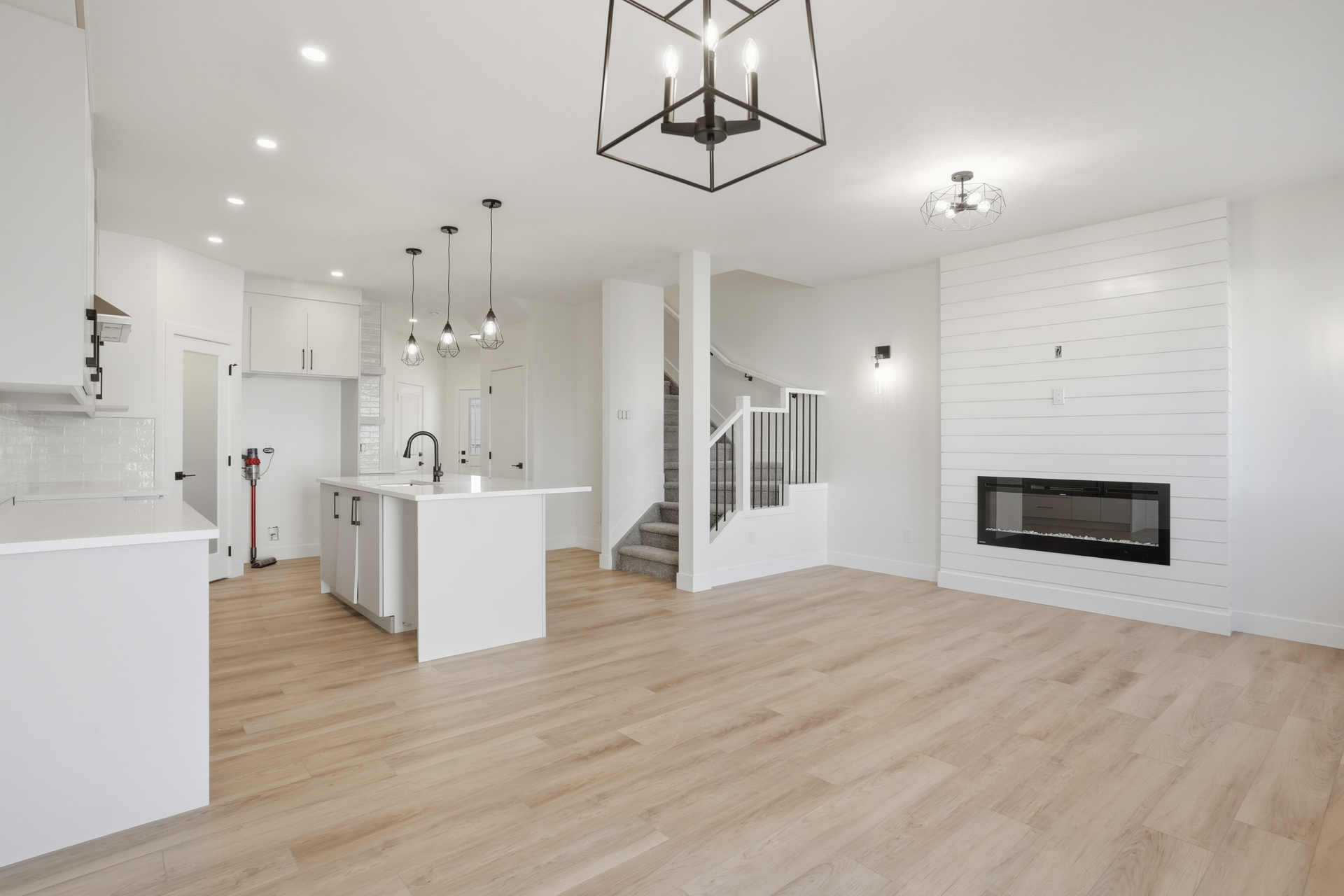 - Electric Fireplace and feature wall in the great room